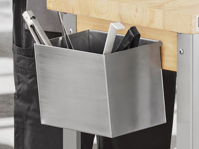 The removable utensil holder on the side gives you secure a place to keep common utensils and hand tools at the ready without you worrying about them slipping off the undershelves.