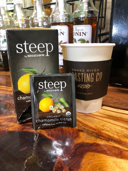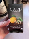 Steep by Bigelow organic chamomile citrus caffeine free herbal tea is a natural organic chamomile blended with perfect hint of lemon is sweet and soothing way to unwind anytime of the day take steep take a deep breath and relax