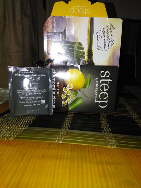 Chamomile and citrus is a perfect blend for a herbal tea and it is awesome when it is organic, you can feel the tones as soon as the bags meet the bags.