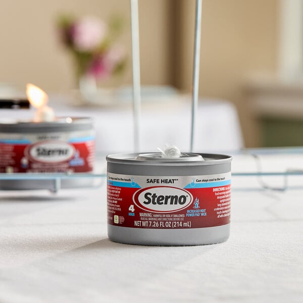 These Sterno 10114 Safe Heat gel fuel canisters quickly warm foods with a high output thanks to their broad flame and hybrid design. This innovative hybrid design combines the high heating power of gel fuel with the safety and efficiency of wick fuel through a patented Power Pad to prevent spilling, while burning hotter than traditional wick chafer fuels. In fact, with this Safe Heat gel fuel canister, you'll receive up to 4 hours of unwavering heat!