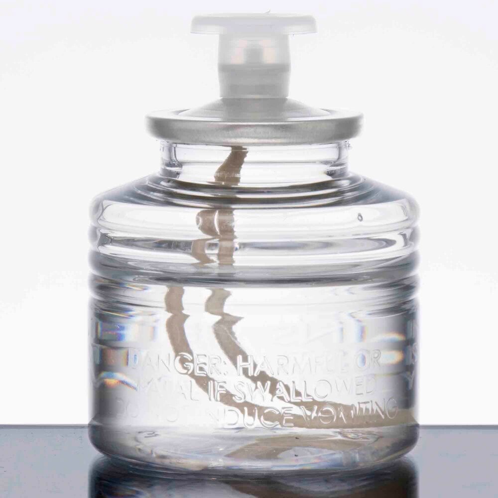 The aluminum top plate provides a leak-free seal and holds the wick in place to deliver the liquid to the flame.