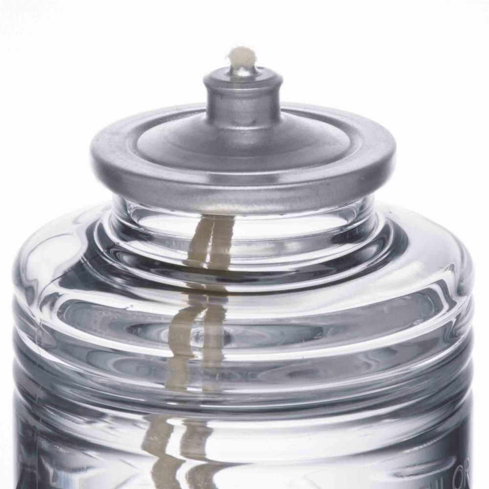 The aluminum top plate provides a leak-free seal and holds the wick in place to deliver the liquid to the flame.