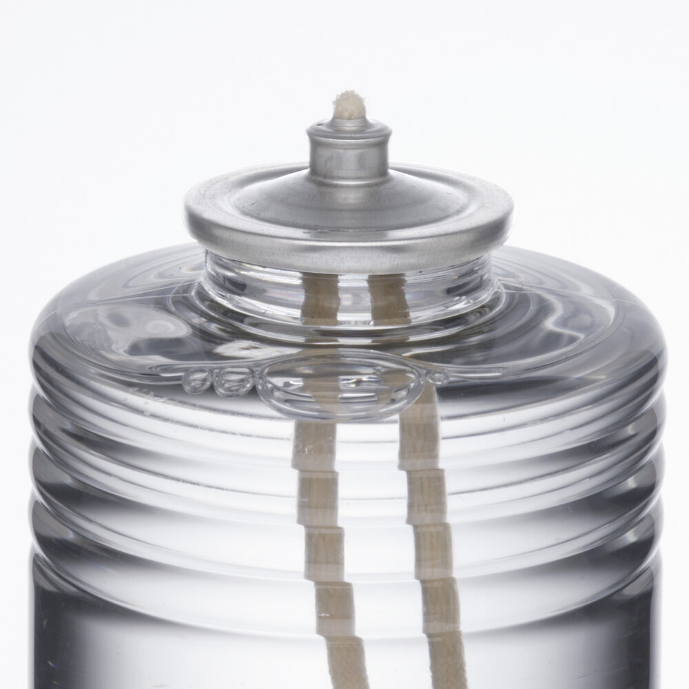 The aluminum top plate provides a leak-free seal and holds the wick in place to deliver the liquid to the flame.