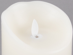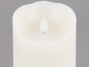 This flameless candle is made of scentless, cream colored wax and features a sloped top that mimics the look of a used candle. This incredibly realistic flameless alternative sacrifices none of the pleasing aesthetics of a real candle, while providing a genuine look that elevates your presentations.