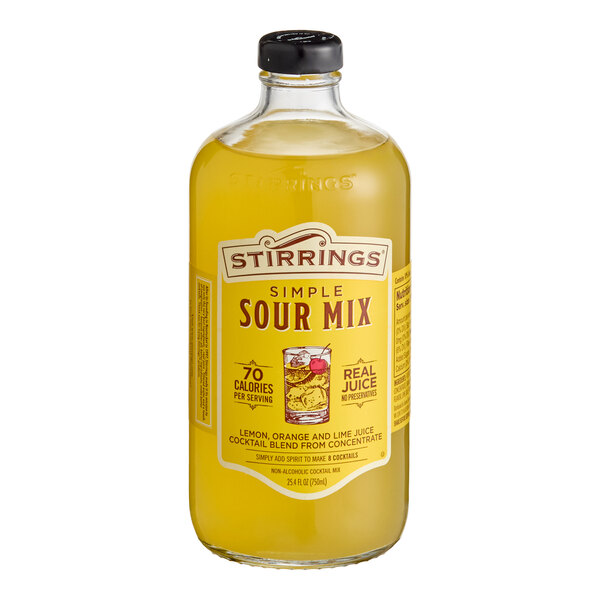 With this Stirrings sour mix, crafting high-quality cocktails is as easy as adding your favorite liquor, giving it a stir, and serving! Featuring the bright, citrusy taste of fresh-squeezed lemon, orange, and key lime juice, this mix is a convenient and versatile way to offer delicious drinks to your guests. It's perfect for crafting a classic whiskey sour - just shake with whiskey or bourbon and ice, strain into a glass, garnish with a maraschino cherry, and serve! For a tasty mocktail that doesn't feel like an afterthought, combine this mix with club soda and ice for a flavorful, alcohol-free option.