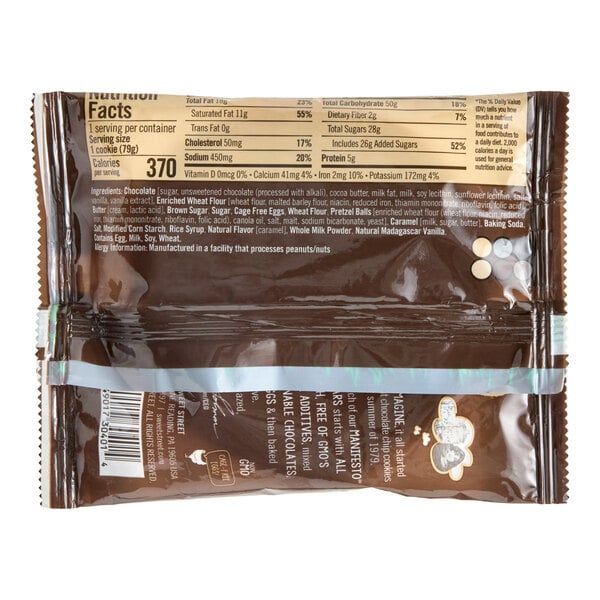 Serve up simple, flavorful desserts easily with these Sweet Street Desserts Sandy's Amazing chocolate chunk cookies! Featuring a buttery, caramelized taste and crisp, chewy texture, these decadent chocolate chunk cookies are crafted with brown butter, cage free eggs, and pure cane sugar. They are chock full of delicious add-ins with pretzel pieces and sustainably harvested milk, semi-sweet, and dark chocolate chunks, for the perfect crowd-pleasing option for your establishment. An ideal staple for your dessert menu, serve them as is or alongside a chocolate fountain or sundae bar, allowing your guests to create a custom treat at your events. Or, offer them as part of a snack bar, corporate lunch, or dinner, to ensure a variety of sweets to meet every need!