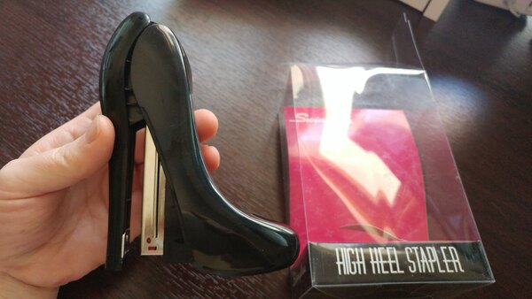 There’s high heel stapler not only looks cool but it is very effective nice and strong and sturdy and works well holds about 3/4 of a strip of staples