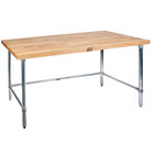 Equip your kitchen with a premium food prep surface with this John Boos & Co. TNB15 wood top work table with stainless steel base - 36" x 60". This impressive work table features a 2 1/4" thick, edge-grain northern hard rock maple flat top, ready to take on a variety of foodservice tasks in your commercial kitchen. The stainless steel base and bracing offer a firm foundation and long-lasting durability for years to come. Use this work table to chop vegetables, roll handmade pasta, knead dough, and any other food prep task in your kitchen.
