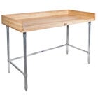Equip your kitchen with a premium food prep surface with this John Boos & Co. DNS03 wood top baker's table with galvanized base and adjustable undershelf - 24" x 72". This impressive baker's table features a 1 3/4" thick, edge-grain northern hard rock maple flat top, ready to take on a variety of foodservice tasks in your commercial kitchen or bakery. The galvanized steel base, undershelf, and bullet feet offer a firm foundation and long-lasting durability for years to come. With the conveniently adjustable undershelf, it's easy to store your most-used supplies, small appliances, and tools right within reach. Plus, the 4" coved riser on the back and sides helps prevent ingredients and tools from spilling or rolling off of the work surface.