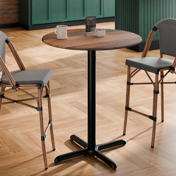 Lancaster Table & Seating Excalibur 36" Round Bar Height Table with Textured Farmhouse Finish and Cross Base Plate