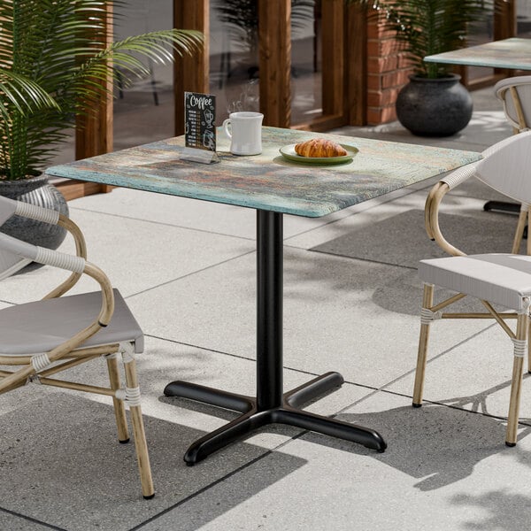 Lancaster Table & Seating Excalibur 36" x 36" Square Standard Height Table with Textured Canyon Painted Faux Metal Finish and Cross Base Plate