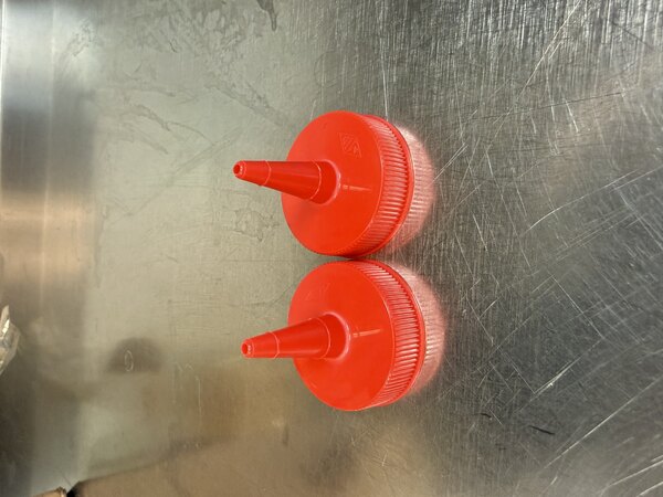 Easily dispense condiments with this TableCraft 100TC TipTop solid white standard cone tip cap for squeeze bottles with a 38 mm opening. This versatile standard cone tip cap allows for quick and accurate dispensing of sauces, dressings, and condiments in your busy kitchen. Use this cap as a replacement for the cap that came with your original standard squeeze bottle, or keep extra caps on hand to easily clean and rotate the caps throughout the day. The white color of this cap is great for creating a color-coded system, and you can pair it with other colored caps to easily identify which products are in your bottles at a glance. Made of polypropylene, this cap is easy to clean in the dishwasher for fast and efficient cleanup. This cone tip fits all TableCraft bottles with standard 38 mm openings.