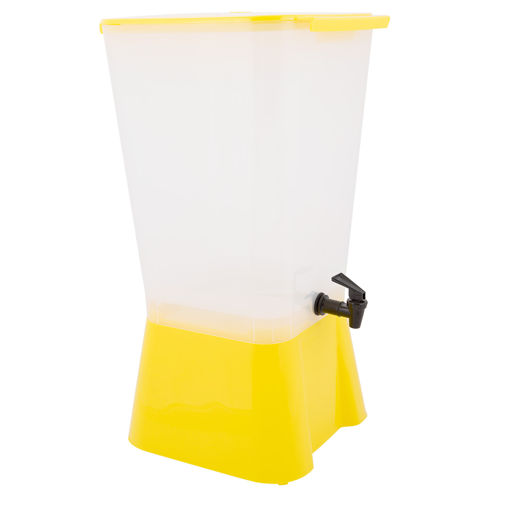 Ships free withThe Tablecraft 1055 5 gallon yellow base beverage dispenser combines eye-catching style with superior service, making it perfect for serving refreshing beverages at your outdoor eatery or casual catered event! With a generous 5 gallon capacity, this beverage dispenser will minimize the time spent refilling, thus allowing your staff to focus on other important tasks. Simply place it at your beverage station, fill it, and let your customers enjoy your signature iced tea, punch, or lemonade!