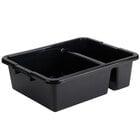 This TableCraft 1547G heavy duty divided bus tub is an efficient and durable solution for cleaning flatware and collecting dishes. The two divided sections of the bus box aid in organizing dirty dinnerware and minimizing chipping of china or glassware. Made of high density polyethylene with the ability to hold up to 70 lb., this bus tub is built to last. Its classic design in gray is easy to clean and sports reinforced handles for easy transporting. Featuring a pebbled exterior finish, it is stackable, and great for storage. A great addition to your cafeteria or restaurant!