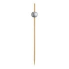 Elevate your food and beverage presentation with the Tablecraft 4 1/2" green ball bamboo food / cocktail pick! This eco-conscious pick is constructed from sustainable bamboo and pinewood, making it a stylish and environmentally friendly choice for your establishment. The decorative green ball topper adds a playful touch to your dishes and helps easily identify specific products, making it perfect for use in busy kitchens and bars. Ideal for use with burgers, sandwiches, cocktails, and appetizers, this pick is a versatile tool that can be used for garnishing and holding together your favorite drinks and snacks.