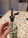 I bought this low cost bottle pourer for my fancy olive oil pourer. The bottle came with a screw on lid, but I wanted something that stood out. So far, this pourer has done the trick as its easy to clean, pour and it looks amazing on our dinner table.