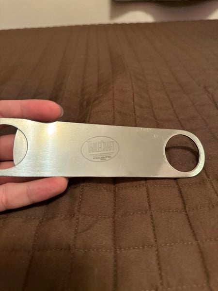 This flat bottle opener is super thin and flat. very sharp, so you need to watch out how to hold it, because it might be cut your fingers. not happy with it.