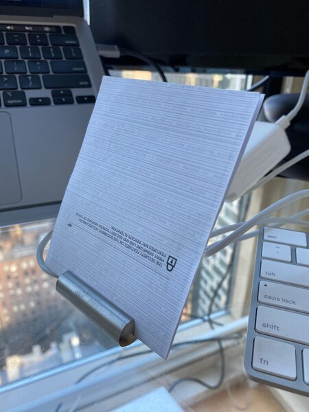 This stainless steel cylinder card holder is small. It works well it’s elegant and really easy to use.
