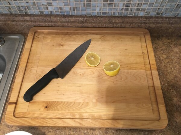 Rough finish, and mine had a chip in the side, but it generally seems like a solid, sturdy cutting board for the price. If you want it to have a smooth finish, you'll need to sand it down. It also needs to be oiled either way. It's not terribly hard, so you will notice scratches from cutting pretty quickly. So long as you are not applying excessive force with the knife, it should be fine.