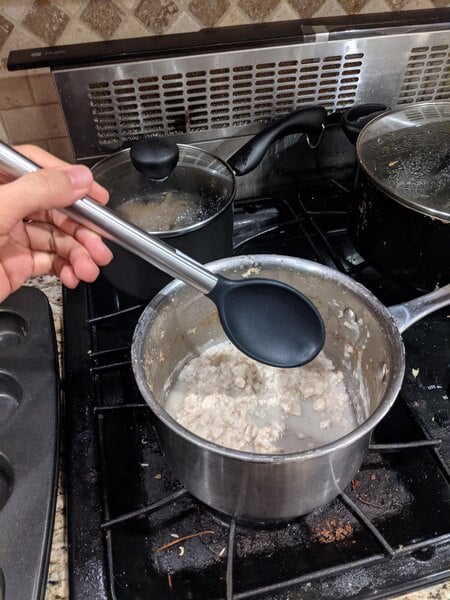 I really like how the stainless steel handle on this spoon contrasts the silicone spoon itself. The handle is high quality and fits well in the hand.