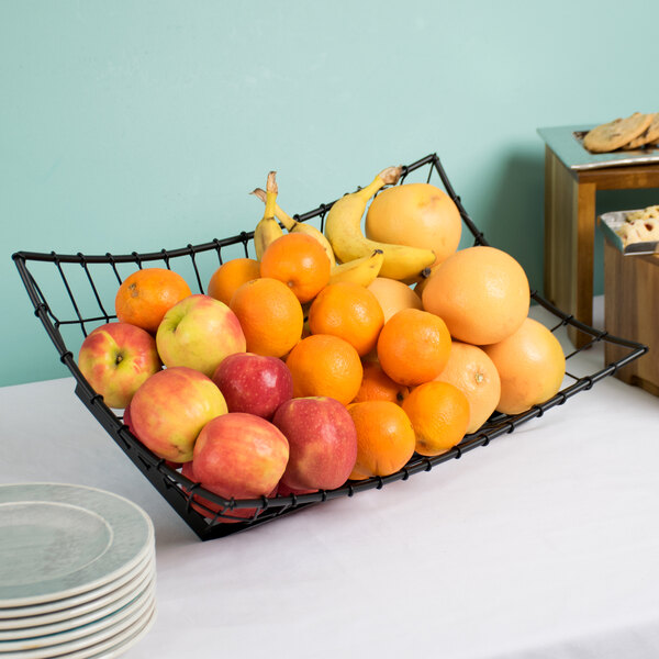 From the Grand Master Transformer Collection, the Tablecraft GMT2113 rectangular black wire basket is powder coated for a durable finish. This Transformer basket features adjustable legs that allow you to create up to 6 unique displays and presentations by setting different heights and angles. From the buffet to the tabletop, this basket provides trendy versatility for any application.