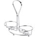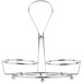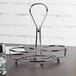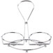 Its durable chrome construction provides a sturdy foundation to hold and transport cruets between tables. Plus, the footed bottom elevates cruets above tabletop or counter surfaces. It includes a handle on the top that makes it easy to move when bussing tables.