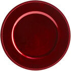 Add a stylish accent to any rustic table setting with this Tabletop Classics by Walco TRG-6655 13" gold round plastic charger plate with beaded rim. This charger plate is great for adding a subtle touch to traditional table settings. It's also perfect for serving at elegant parties, banquets, and other celebratory occasions. It features a classic, beaded rim that provides a textured feel to the plate to further enhance your tabletop decor. Easily place this charger plate under dinner plates, platters, and bowls for a professional, finished look. Its ample 13" diameter provides plenty of room for serving soups, salads, and entrees.
