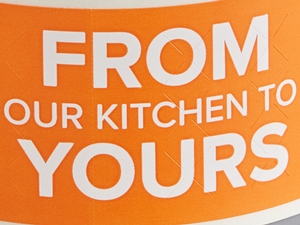 It also includes an "From Our Kitchen To Yours" message on an orange background as an added touch of customer service.