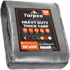 Keep important items protected with this Tarpco Safety 10' x 20' green / black extra heavy-duty weatherproof 14 mil poly tarp with reinforced edges. This multi-purpose tarp serves as a protective cover for items such as building materials, vehicles, roofs, and outdoor furniture. It boasts metal grommets every 24" and it has reinforced edges, making it quick and easy to tie down. Thanks to the ultra-strong grommets, your tarp will remain securely in place even when it is windy.