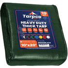 Keep important items protected with this Tarpco Safety 10' x 20' green / black heavy-duty weatherproof 10 mil poly tarp with reinforced edges. This multi-purpose tarp serves as a protective cover for items such as building materials, vehicles, roofs, and outdoor furniture. It boasts metal grommets every 24" and it has reinforced edges, making it quick and easy to tie down. Thanks to the ultra-strong grommets, your tarp will remain securely in place even when it is windy.
