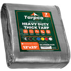 Tarpco Safety 12' x 25' Blue Heavy-Duty Weatherproof 7 Mil Poly Tarp with Reinforced Edges