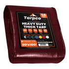 Tarpco Safety 50' x 100' Maroon / Black Extra Heavy-Duty Weatherproof 14 Mil Poly Tarp with Reinforced Edges TS10750X100