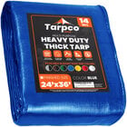 Keep important items protected with this Tarpco Safety 24' x 36' brown / black extra heavy-duty weatherproof 14 mil poly tarp with reinforced edges. This multi-purpose tarp serves as a protective cover for items such as building materials, vehicles, roofs, and outdoor furniture. It boasts metal grommets every 24" and it has reinforced edges, making it quick and easy to tie down. Thanks to the ultra-strong grommets, your tarp will remain securely in place even when it is windy.