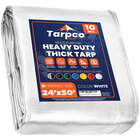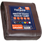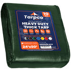 Keep important items protected with this Tarpco Safety 24' x 50' green / black extra heavy-duty weatherproof 10 mil poly tarp with reinforced edges. This multi-purpose tarp serves as a protective cover for items such as building materials, vehicles, roofs, and outdoor furniture. It boasts metal grommets every 24" and it has reinforced edges, making it quick and easy to tie down. Thanks to the ultra-strong grommets, your tarp will remain securely in place even when it is windy.