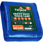 Tarpco Safety 25' x 45' Blue Heavy-Duty Weatherproof 7 Mil Poly Tarp with Reinforced Edges