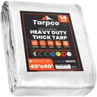 Tarpco Safety 40' x 40' White Extra Heavy-Duty Weatherproof 14 Mil Poly Tarp with Reinforced Edges