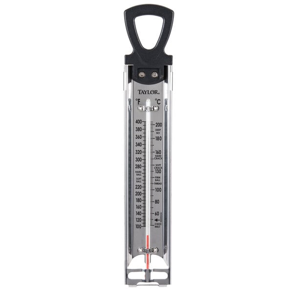 Nice, stable thermometer. Works great for checking and maintaining oil temps. Make sure to keep it to the back of the pan or fryer. The large handle is easy to his and knock down splashing hot oil around.