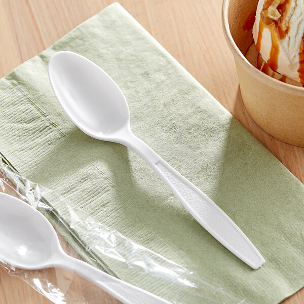 Choice White Extra Heavy Weight Wrapped Polystyrene Plastic Teaspoon - 100/Pack