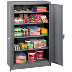 This cabinet features 5 openings and 4 adjustable shelves, giving you plenty of space to store your cleaning supplies and office supplies. Each shelf has a 200 lb. capacity and can easily be adjusted in 2" increments without using any tools. Plus, integrated shelf support tabs secure the shelf without clips or added parts. For your convenience, this cabinet ships fully assembled.
