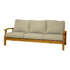 For an upscale, cozy sitting area that guests will love, choose this Three Birds Casual Monterey charcoal deep seating 3-seater sofa. This sofa is perfect for use as a standalone piece or paired with other Monterey seating options (sold separately) for a cohesive sitting area. It features a stylish teak frame that is accented with water-resistant charcoal cushions. The comfortable curved arm rests make this sofa the perfect place to sit back and relax. The thick, luxurious teak wood makes this sofa perfect for use at your country club, outdoor restaurant, or resort.