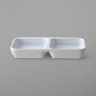 This Thunder Group 19002WH Classic white 4 oz. melamine double ramekin is perfect for any restaurant, bar, or cafe! The sleek white rectangular melamine double ramekin is the perfect color for framing your chef's artistic sauces and gourmet condiments. Whether you're serving ketchup alongside a basket of French fries or butter alongside a baked potato, you won't have to worry about breakage with this durable and dependable ramekin Additionally, its double ramekin design allows you to serve two different sauces with one ramekin.