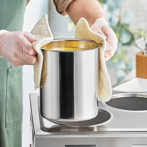 The durable stainless steel construction provides great heat distribution and ensures you have a lasting addition to your kitchen or foodservice operation. Plus, its mirror finish also makes it suitable for use where it might be seen by patrons. With this bain marie pot, you can fill it with a variety of foods, and then store these foods in the same container to make cleanup exceptionally simple. Just allow the container to cool, seal it with saran wrap or a lid (sold separately), and save yourself time and energy.