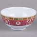 This eye-catching and unique Thunder Group 3004TR Longevity 12 oz. round melamine rice bowl is perfect for serving rice, salads, and soups! This bowl features an intricate, Asian-inspired illustration pattern with vibrant red, yellow, and blue coloring to add flair to your service. This bowl is made of melamine that is break- and chip-resistant for long-lasting quality that you and your customers are sure to love. Plus, it is even stain-resistant to any acidic food product.