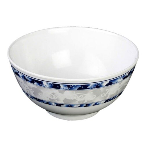 This eye-catching and unique Thunder Group 5206DL Blue Dragon 25 oz. round melamine rice bowl is perfect for serving rice, salads, or fruit dishes! This Asian-inspired bowl features a Blue Dragon pattern which will bring cultural detail and elegance to your restaurant, buffet, or hotel. This bowl is made of melamine that is break- and chip-resistant for long-lasting quality that you and your customers are sure to love. Plus, it is even stain-resistant to any acidic food product.
