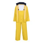 Protect yourself from the elements with this Tingley Comfort-Tuff yellow 2-piece rainsuit! This 2-piece rainsuit comes with a hooded jacket and overalls. Both the jacket and the overalls are constructed of polyester with a 0.35 mm PVC coating, and they feature a bright yellow color for easy visibility. The electronically welded seams offer 100% waterproof protection, and the jacket features storm flaps on the inside and outside, providing dual protection against wind and rain. Perfect for staying dry in inclement weather, this rainsuit is ideal for use in agriculture, construction, utilities, and landscaping.