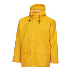 Keep yourself dry in wet work environments with this Tingley Weather-Tuff yellow rain jacket. This jacket is constructed with a heavy-duty polyester fabric with a .40 mm PVC coating. The jacket's soft material ensures all-day comfort, and its Therm-O-Rad sealed seams are 100% waterproof and mildew-resistant. This item features a modified raglan sleeve construction with a full-cut shoulder and a 90-degree sleeve-to-body angle for maximum freedom of movement. The waist features an adjustable elastic drawcord for added protection. The yellow color of this jacket is easy to identify, and this item ships on a hanger for immediate hanging.