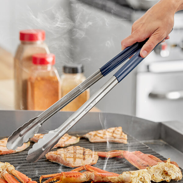 The blue color-coded plastic handle of these tongs is not just for visual appeal - it serves a crucial purpose in preventing cross-contamination. By incorporating these tongs into a HACCP or other color-coded system, you can significantly reduce the risk of foodborne illnesses in your establishment.