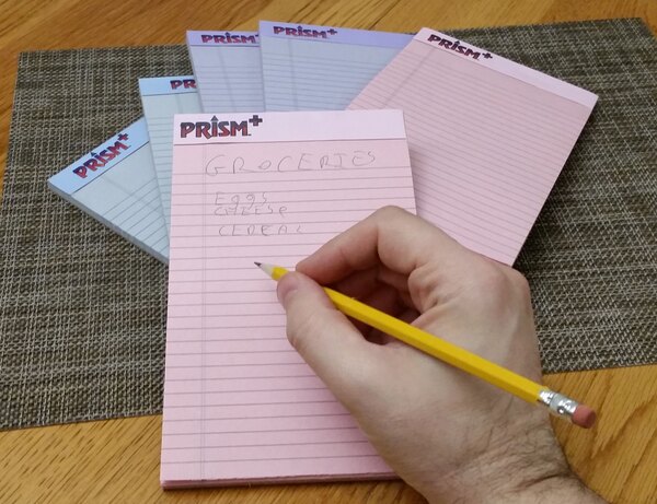 With narrow ruled paper, there is plenty of room for legible, quick note taking in the classroom or office. Its sturdy chipboard back allows for easy writing, even while standing. Plus, the paper comes in either pink, orchid, or blue and is light enough to contrast dark-colored ink for easy-to-read writing.