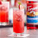 For the strawberry puree, combine 1 cup fresh strawberries, 1/2 tbsp. sugar, and 1 tbsp. water in a bowl or cup and mash with a wooden spoon or pulse in a blender until the mixture is smooth with some strawberry chunks, then set aside. In a separate cup, combine xanthan gum and water and mix together. The mixture should become thick and gooey; set it aside. Add 1/2 of the strawberry puree to a blender along with the Torani strawberry syrup, Torani chocolate Milano syrup, milk, vanilla extract, xanthan gum mixture, and ice. Blend on high for 60 seconds. In a glass, add the remaining strawberry puree, the frappe, and top with whipped cream, freeze dried strawberries, and melted chocolate chips.