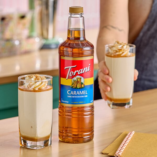 Bring all new flavors to your specialty drink menu with this Torani caramel flavoring syrup! This tempting flavor will complement your beverages without overpowering them or being too sweet, while the user-friendly bottle will be convenient for your busy baristas to use. The syrup is packaged in a convenient plastic bottle which prevents broken glass in the prep area, and it can easily be paired with a compatible pump (sold separately) for quick, efficient service during peak serving hours. This dairy-friendly Torani flavoring syrup is specially formulated to resist curdling in milk and to hold up well under heat, making it the perfect choice for espresso-based drinks, brewed coffee, or tea.